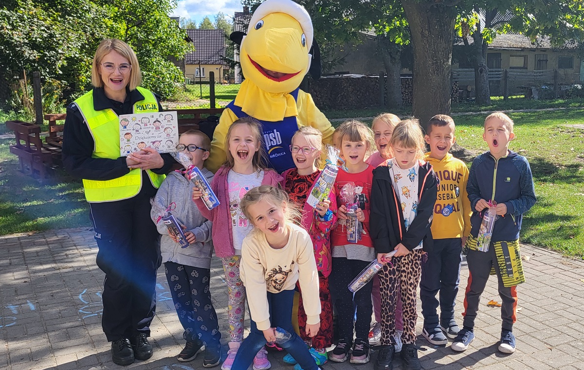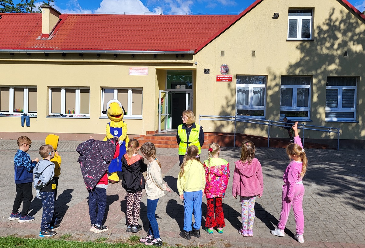 Adresatami zajęć byli przede wszystkim pierwszoklasiści, dla których rozpoczęcie nauki wiąże się z nowymi wyzwaniami i samodzielnym poruszaniem się w ruchu drogowym. Policjanci przypominali zasady bezpiecznego przechodzenia przez jezdnię oraz właściwego zachowania w kontaktach z nieznajomymi. Dzieci uczyły się również, jak prawidłowo korzystać z numeru alarmowego 112, bezpiecznie jeździć na rowerze i hulajnodze, a także dlaczego tak ważne jest zapinanie pasów bezpieczeństwa.