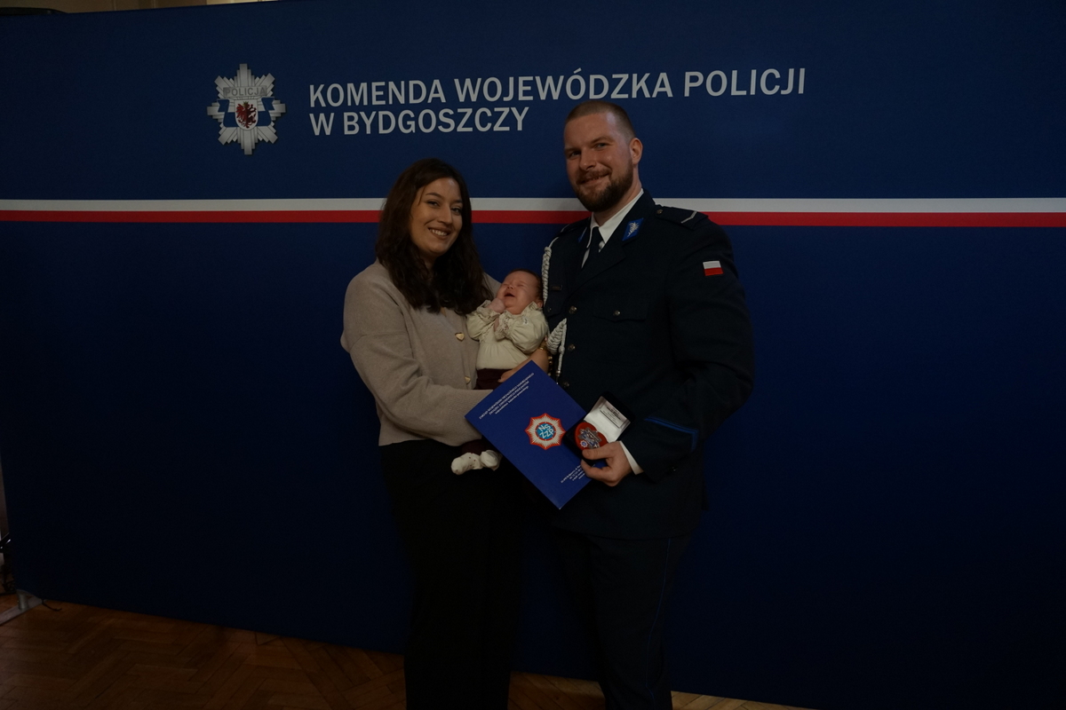 • sierż. Paweł Olejnik z Oddziału Prewencji Policji w Bydgoszczy – w czasie wolnym od służby udzielił pomocy nieprzytomnej kobiecie,