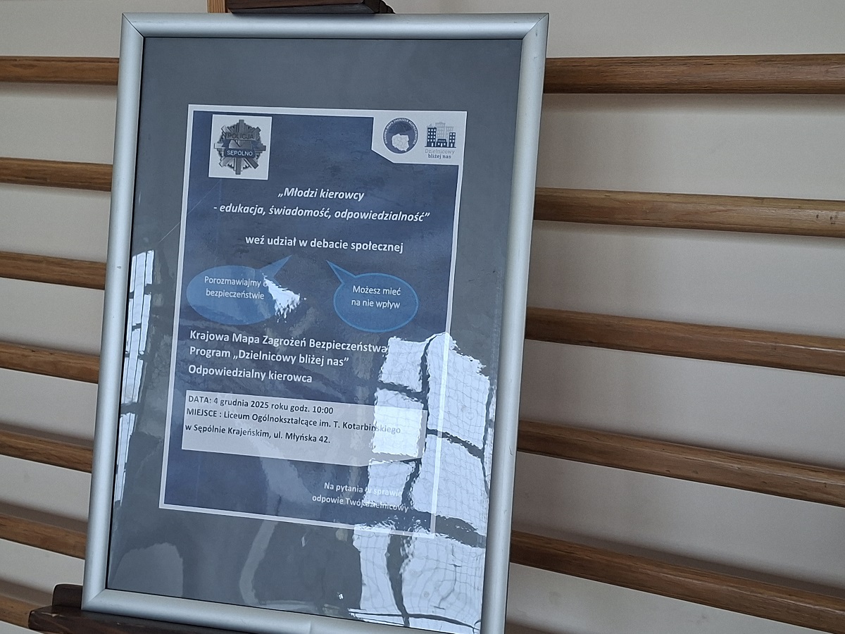 W Liceum Ogólnokształcącym im. Tadeusza Kotarbińskiego w Sępólnie Krajeńskim odbyła się wczoraj debata społeczna pod hasłem „Młodzi kierowcy – edukacja, świadomość, odpowiedzialność”. Wydarzenie zostało zorganizowane przez policjantów z Komendy Powiatowej Policji w Sępólnie Krajeńskim, a jego celem było zwiększenie wiedzy i świadomości młodych uczestników ruchu drogowego w zakresie bezpieczeństwa oraz promowanie odpowiedzialnych postaw za kierownicą.
