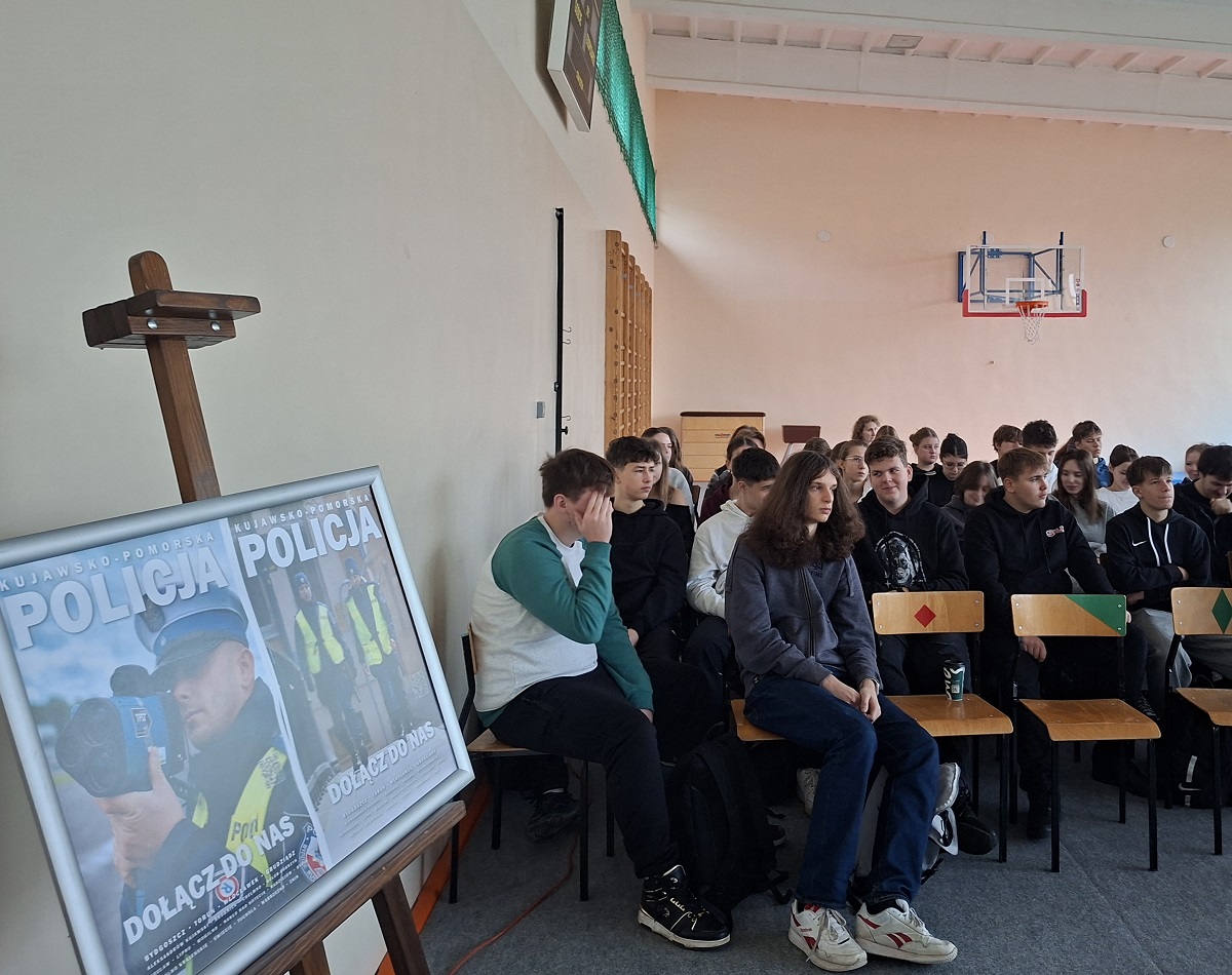 Policjanci składają podziękowania dyrekcji szkoły, nauczycielom oraz uczniom za otwartość, zaangażowanie i aktywne uczestnictwo w debacie. Tego typu inicjatywy są niezwykle istotnym elementem działań profilaktycznych, które mają realny wpływ na kształtowanie odpowiedzialnych zachowań wśród młodych kierowców.