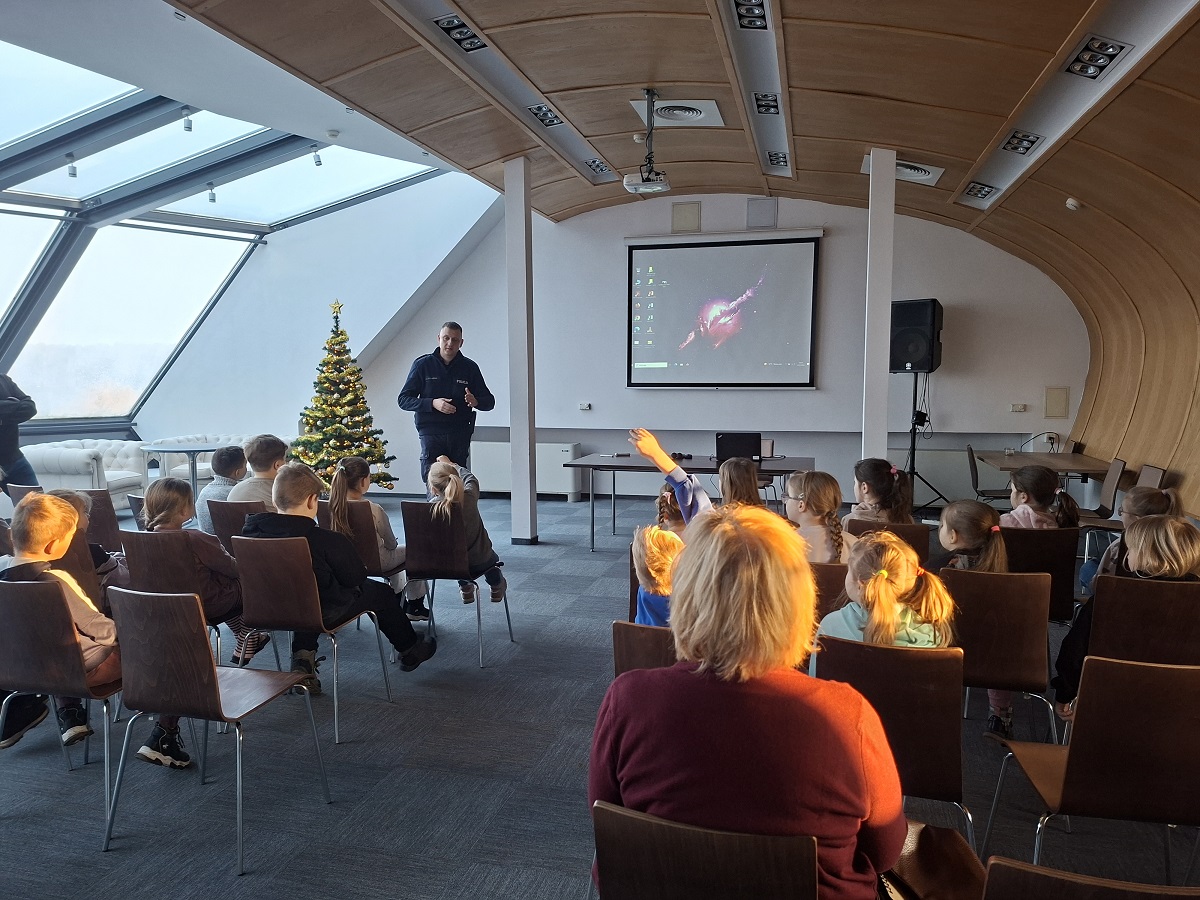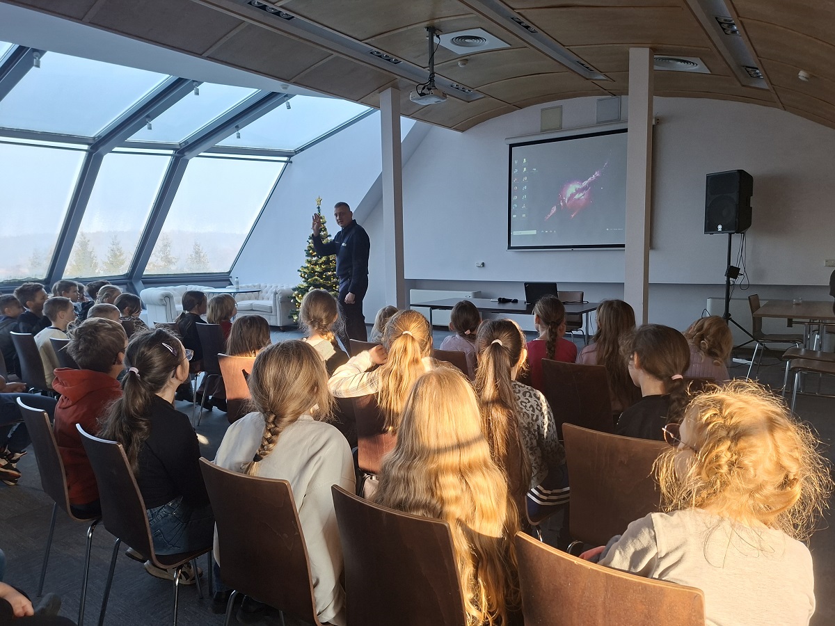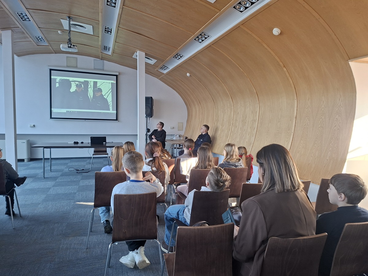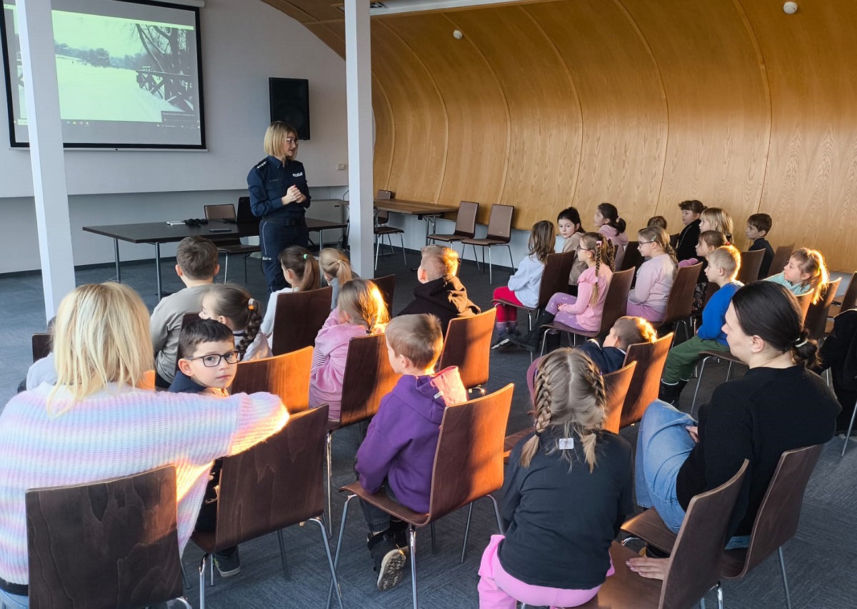 W trosce o bezpieczeństwo dzieci w czasie ferii zimowych, w czwartek (22.01.2026) policjantka wspólnie z dzielnicowym spotkali się z uczniami klas 1-3 Szkoły Podstawowej numer 1 w Sępólnie Krajeńskim. Podczas spotkania, zorganizowanego w miejscowym Centrum Aktywności Społecznej, dzieci mogły usłyszeć wiele cennych rad i wskazówek, dotyczących tego, jak należy spędzać czas wolny w sposób bezpieczny. Przypomniano zasady bezpieczeństwa związane z uprawianiem sportów zimowych oraz zabawą na świeżym powietrzu. Omówiono również przykre skutki wchodzenia na kruchy lód, czy zjeżdżania na sankach w pobliżu jezdni.