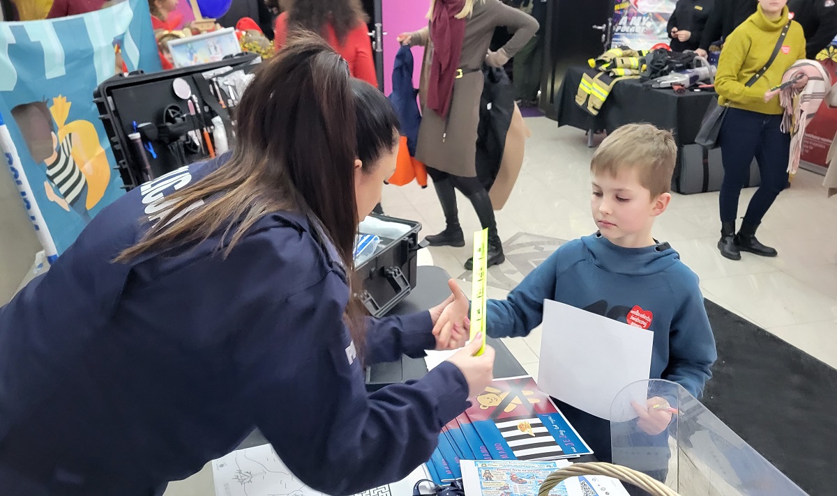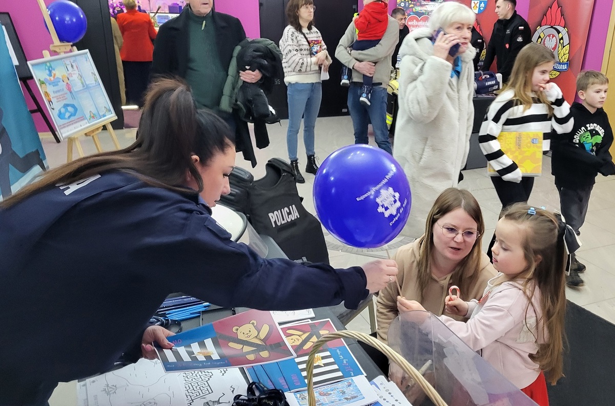 Osobom odwiedzającym stoisko rozdawano również elementy odblaskowe, które mają realny wpływ na poprawę bezpieczeństwa pieszych i rowerzystów. Starsi uczestnicy chętnie korzystali z okazji, aby uzyskać informacje dotyczące zasad naboru do Policji, procesu rekrutacji oraz wymagań stawianych kandydatom do służby.