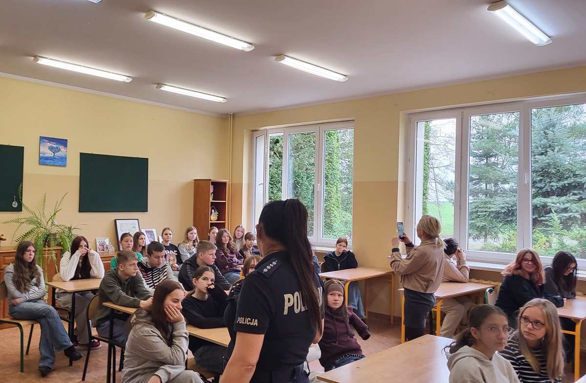 Podczas spotkania uczniowie mieli możliwość zadawania pytań oraz dzielenia się swoimi spostrzeżeniami. Tego rodzaju działania profilaktyczne stanowią istotny element pracy Policji na rzecz bezpieczeństwa dzieci i młodzieży.